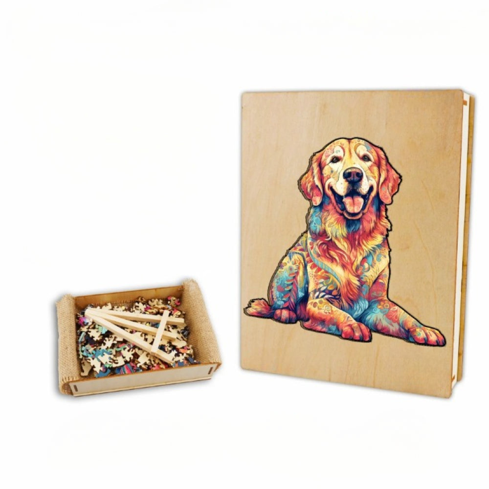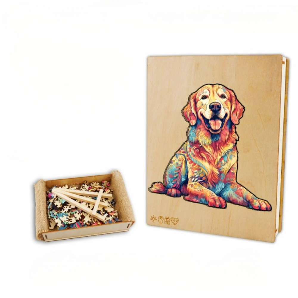 Introducing our premium Golden Retriever Wooden Jigsaw Puzzle, meticulously crafted to provide hours of brain-boosting fun and family enjoyment.