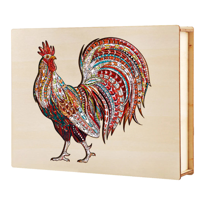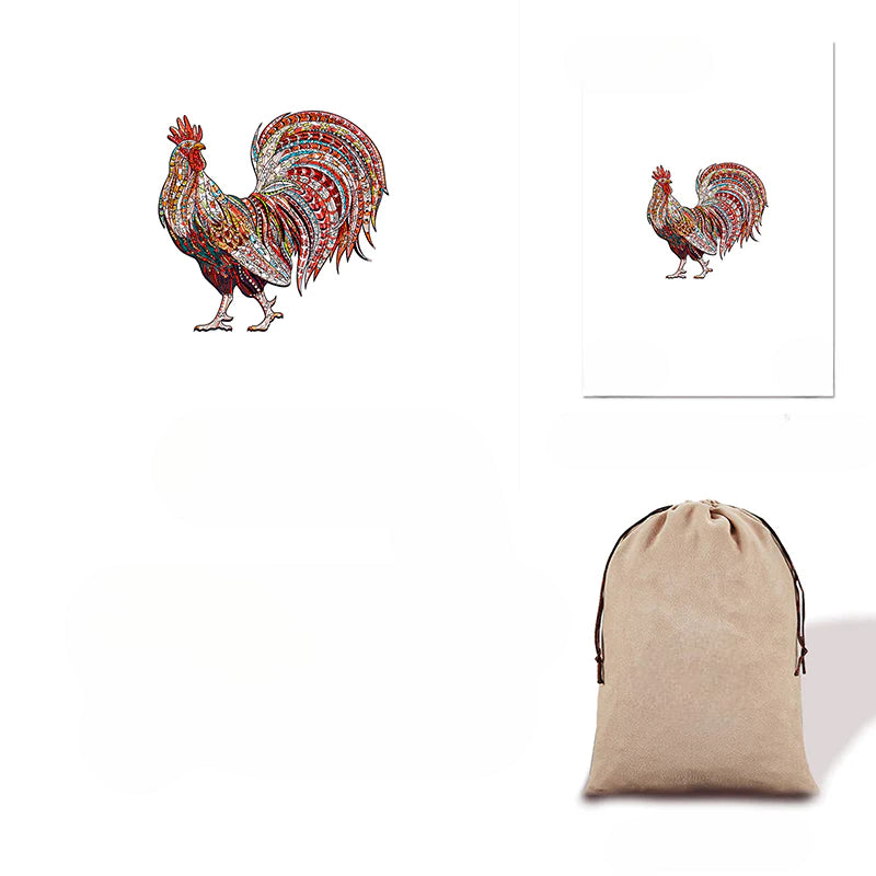The provided image is of a wooden jigsaw puzzle cut into the shape of a hen. This Hen Wooden Jigsaw Puzzle merges artistic expression with the classic pastime of puzzle-solving, making it an excellent choice for those looking for a creative and absorbing activity.