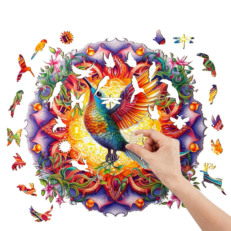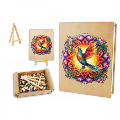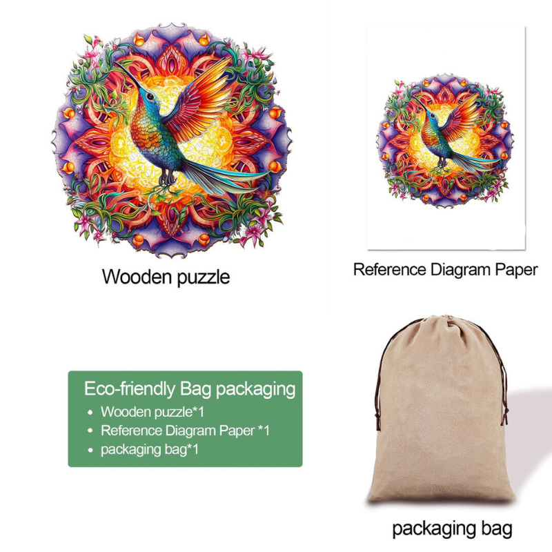 Introducing our Hummingbird Wooden Jigsaw Puzzle – a captivating blend of artistry and education. This exceptional gift is meticulously crafted from premium 3mm cork and HDF wood, ensuring a lasting and engaging experience for puzzle enthusiasts of all ages.