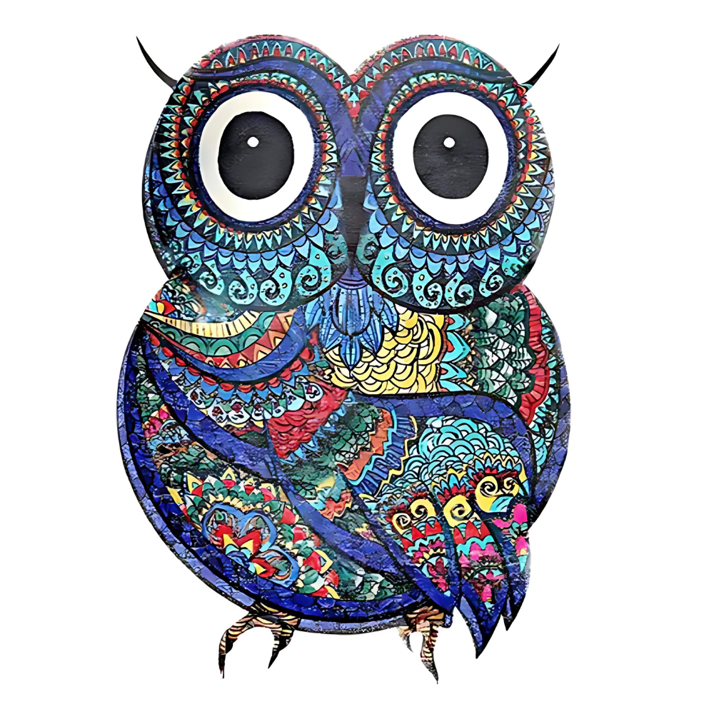 Design and Pattern: The vibrant owl design incorporates intricate geometric and floral patterns, brought to life through advanced UV printing technology. The result is a bold, colorful masterpiece that can be displayed as decor upon completion.