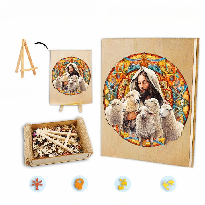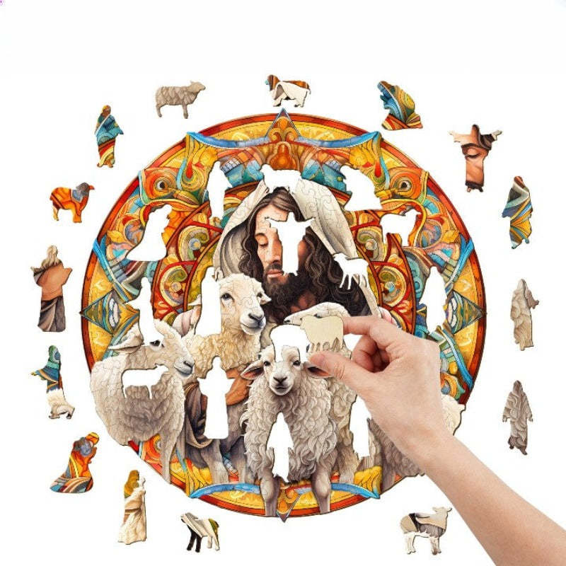 Explore the enchanting realm of puzzles with our "Jesus Shepherd Wooden Jigsaw Puzzle." Meticulously crafted with precision and artistic flair, this puzzle transcends mere entertainment; it serves as a representation of fortune and imaginative expression.