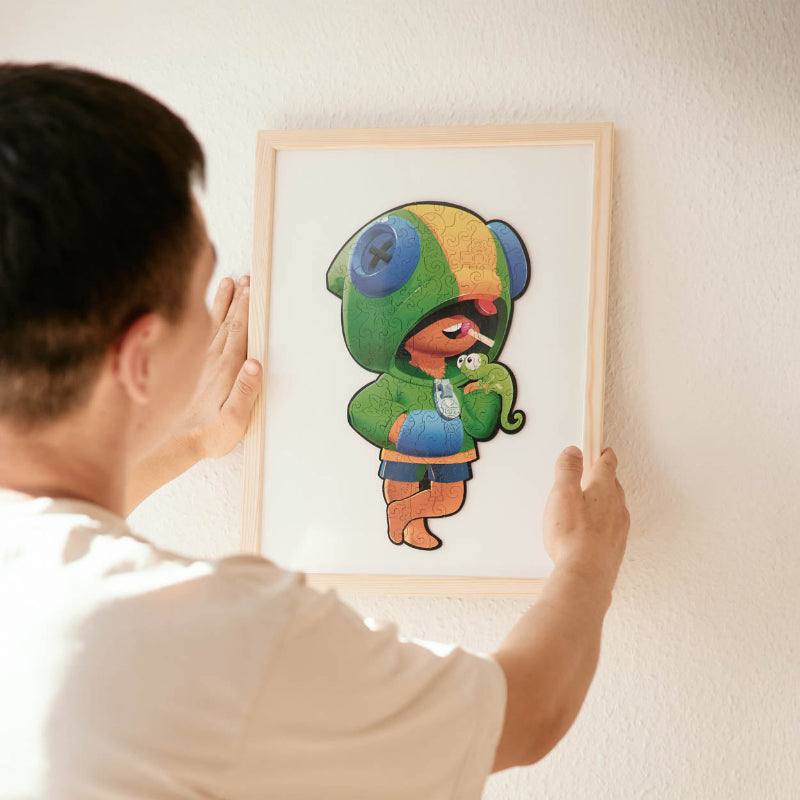 This Leon Brawl Stars wooden puzzle is a rewarding activity and a stunning decorative piece. Its vivid design and high-quality construction ensure a fulfilling experience for puzzle enthusiasts and fans alike.