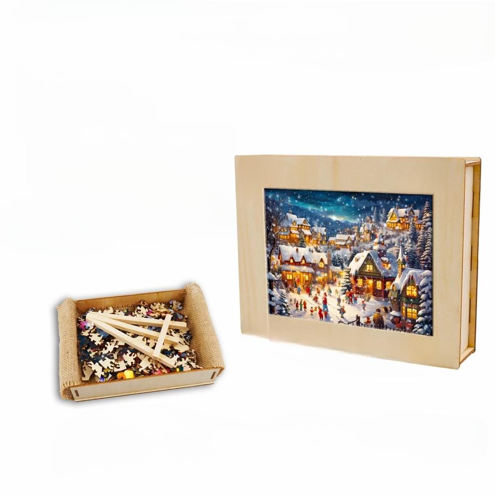 Elevate your puzzle-solving experience with the Lively Snowy Night Wooden Jigsaw Puzzle – where quality meets creativity for endless hours of entertainment and brain-challenging fun.