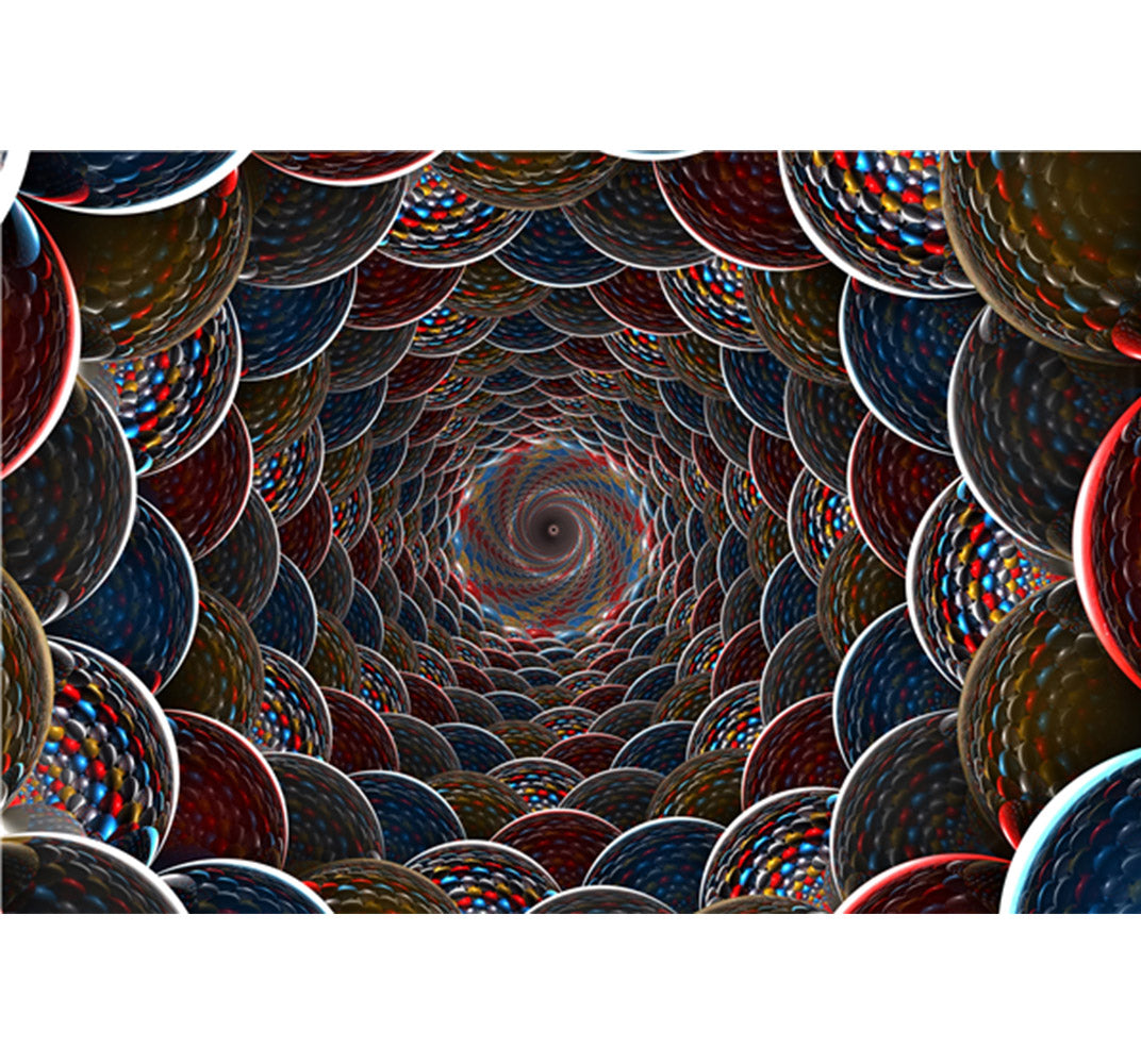 Loop Hole Pattern Wooden 1000 Piece Jigsaw Puzzle is an optical illusion illustration of colorful discs forming a tunnel.