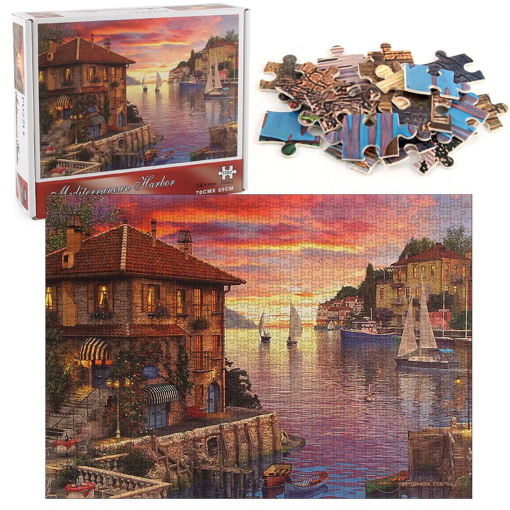 Mediterranean Harbor Wooden 1000 Piece Jigsaw Puzzle Toy For Adults and Kids is a 1000 piece wooden jigsaw puzzle designed by artist Kiaan Scott. You'll enjoy this amazing landscape by building it piece by piece with family and friends! The 1000-piece jigsaws offer an enjoyable challenge to all puzzle enthusiasts.