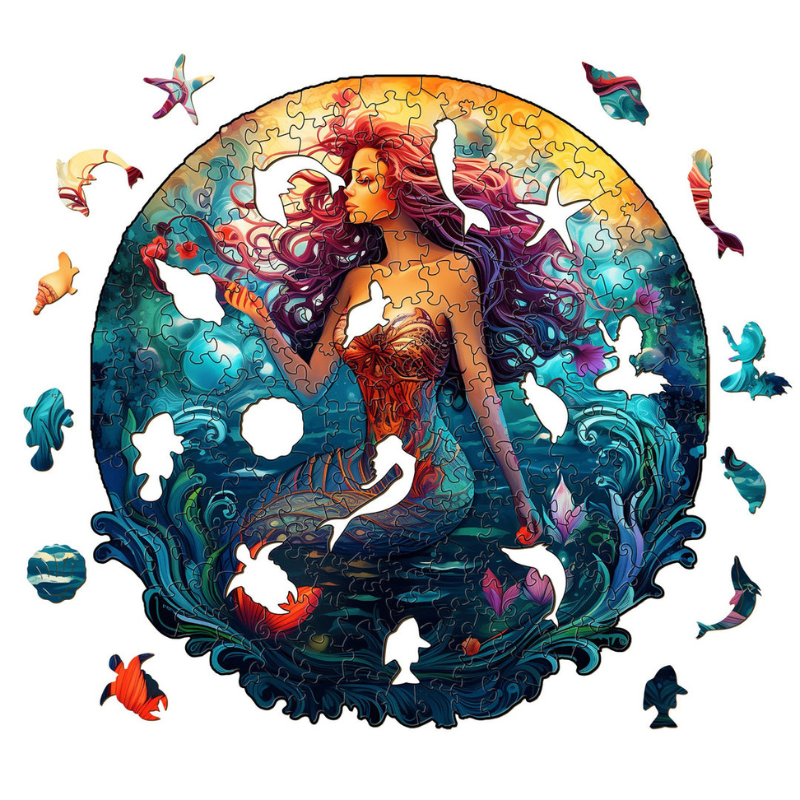 Unleash the magic of the sea with our Mermaid Wooden Jigsaw Puzzle – a perfect blend of artistry, quality, and educational value. Dive into the joy of puzzling today!