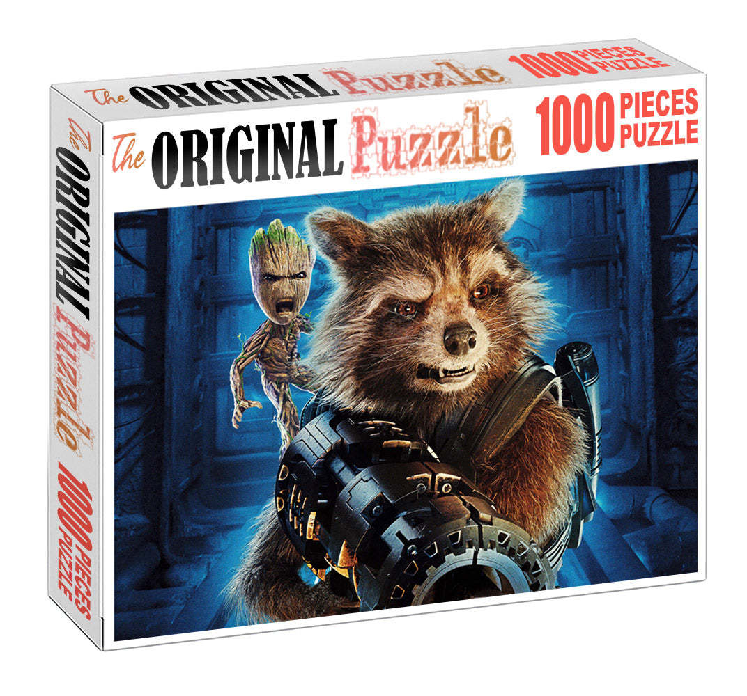 Mini Groot and Rocket is a 1000 piece wooden jigsaw puzzle designed by artist Francis Deroa. The painting represents the imaginative idea of a dreamy castle in the clouds. This is a futuristic piece designed for little scientists in your house or older kids with a flair for space and fiction. The 1000-piece jigsaws offer an enjoyable challenge to all puzzle enthusiasts