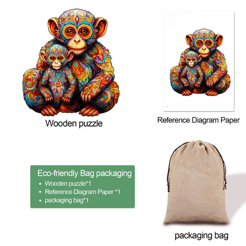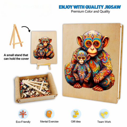 Engage in an entertaining assembly experience with this Colorful Monkey Family Wooden Jigsaw Puzzle. Designed for both fun and challenge, it brings a lively twist to traditional puzzles, featuring vibrantly colored primate portraits.