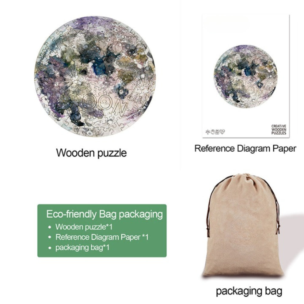 Elevate your puzzle game with the Moon Wooden Jigsaw Puzzle, an enchanting representation of our celestial neighbor. Each piece is a part of the lunar landscape, inviting you to piece together craters, seas, and the mystique that has captivated humanity for centuries.