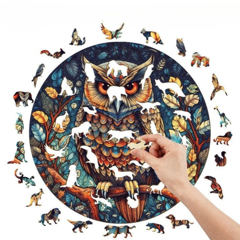 Immerse yourself in the mystical of our Mystic Owl Wooden Jigsaw Puzzle. Crafted for puzzle enthusiasts, this captivating design showcases a majestic owl amidst a moonlit forest. Revel in the intricate details and eco-friendly craftsmanship, providing a challenging experience for ages 8 and up.