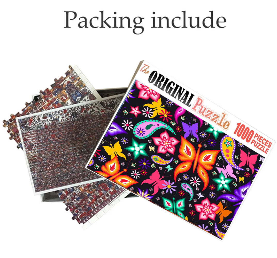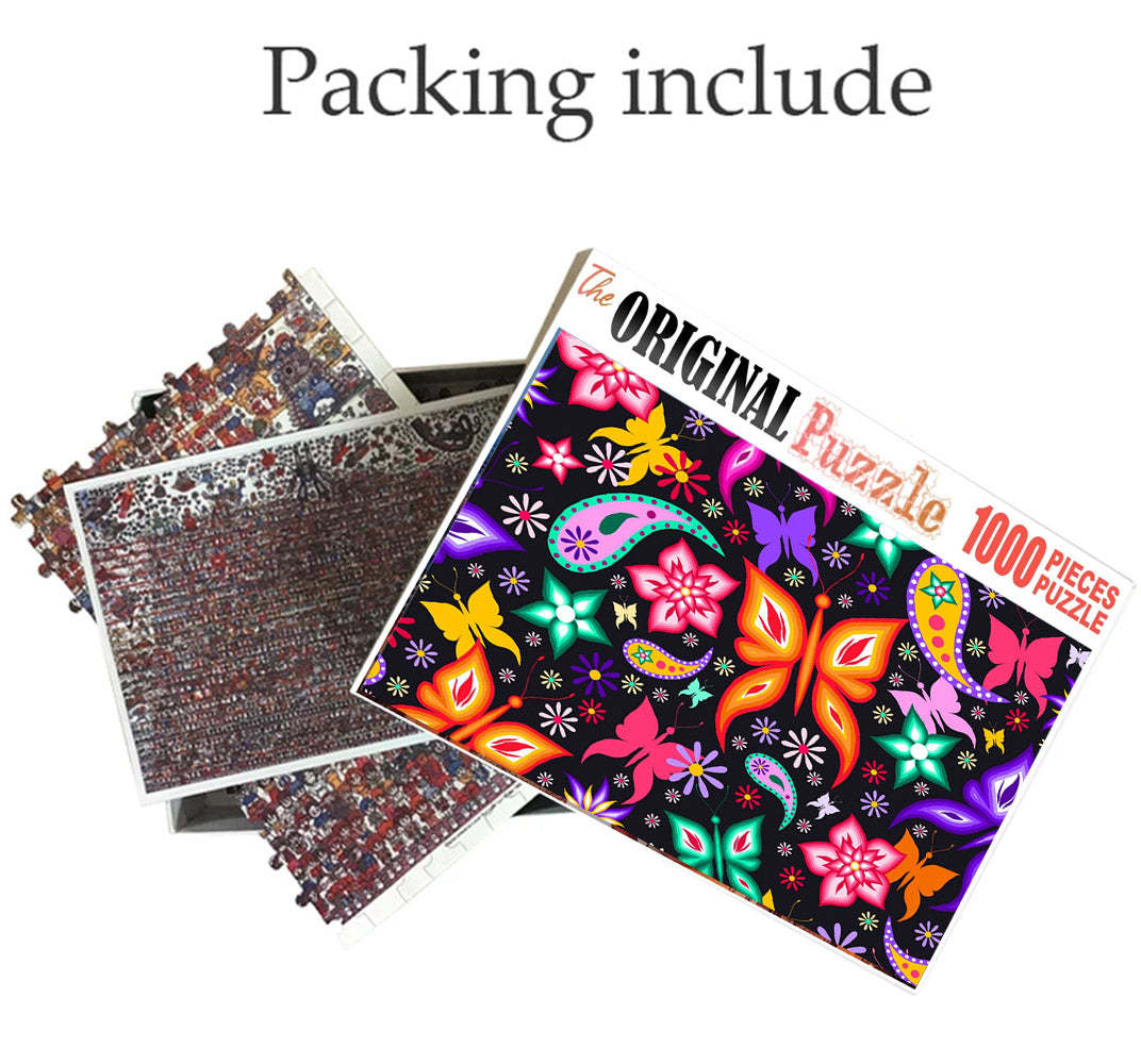 Neon Butterfly Art is a 1000 piece wooden jigsaw puzzle designed by artist Francis Deroa. The painting represents the imaginative idea of a dreamy castle in the clouds. This is a futuristic piece designed for little scientists in your house or older kids with a flair for space and fiction. The 1000-piece jigsaws offer an enjoyable challenge to all puzzle enthusiasts