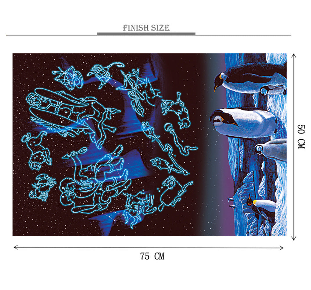 Penguin Zodiac Signs is a 1000 piece wooden jigsaw puzzle designed by artist Francis Deroa. The painting represents the imaginative idea of a dreamy castle in the clouds. This is a futuristic piece designed for little scientists in your house or older kids with a flair for space and fiction. The 1000-piece jigsaws offer an enjoyable challenge to all puzzle enthusiasts