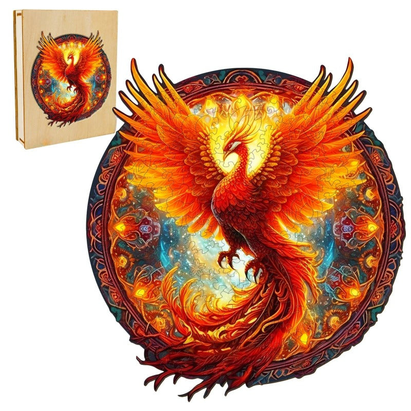 Embark on a captivating journey with our "Phoenix Jigsaw Puzzle." Crafted with precision from premium 3mm cork and HDF wood, this puzzle pays tribute to the legendary Phoenix, a symbol of renewal and rebirth.