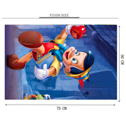 Pinocchio is a 1000 piece wooden jigsaw puzzle showing the little wooden boy Pinocchio who was born as a wooden muppet and later grows up to be one of the most entertaining characters in the cartoon universe.