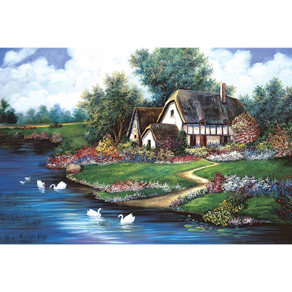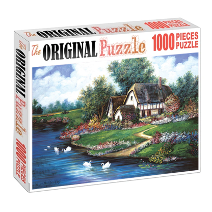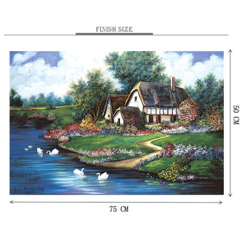 Riverside House is a 1000 piece wooden jigsaw puzzle designed by artist Randi Ramsey. Enjoy putting together this amazing painting that shows a pleasing view of the river by the house while appreciating all details in the painting! 1000-piece jigsaws offer an enjoyable challenge to all puzzle enthusiasts.