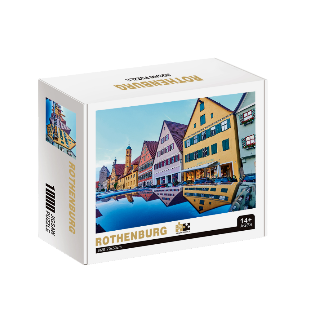 Rothenburg Wooden 1000 Piece Jigsaw Puzzle Toy For Adults and Kids is a 1000 piece wooden jigsaw puzzle designed by artist Kiaan Scott. While doing this puzzle you can feel yourself around romantic rainy street. The 1000-piece jigsaws offer an enjoyable challenge to all puzzle enthusiasts.