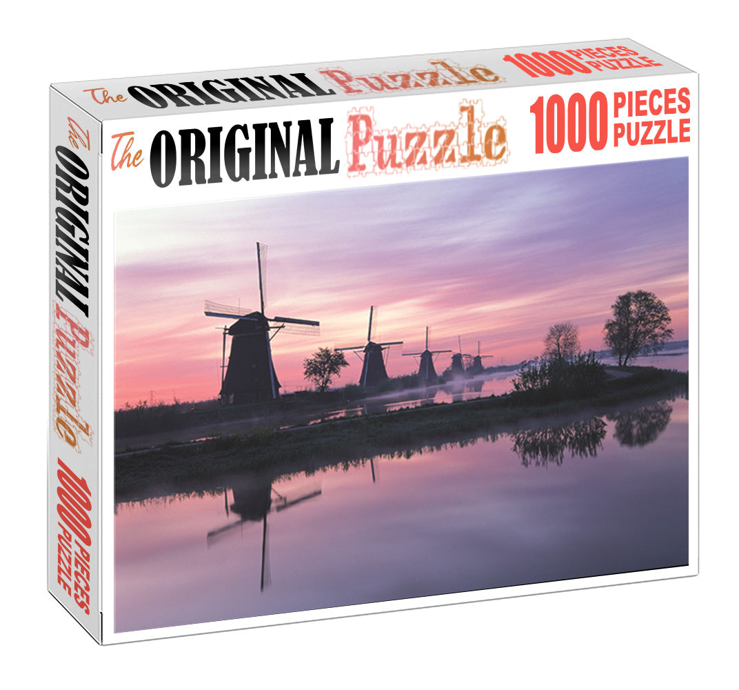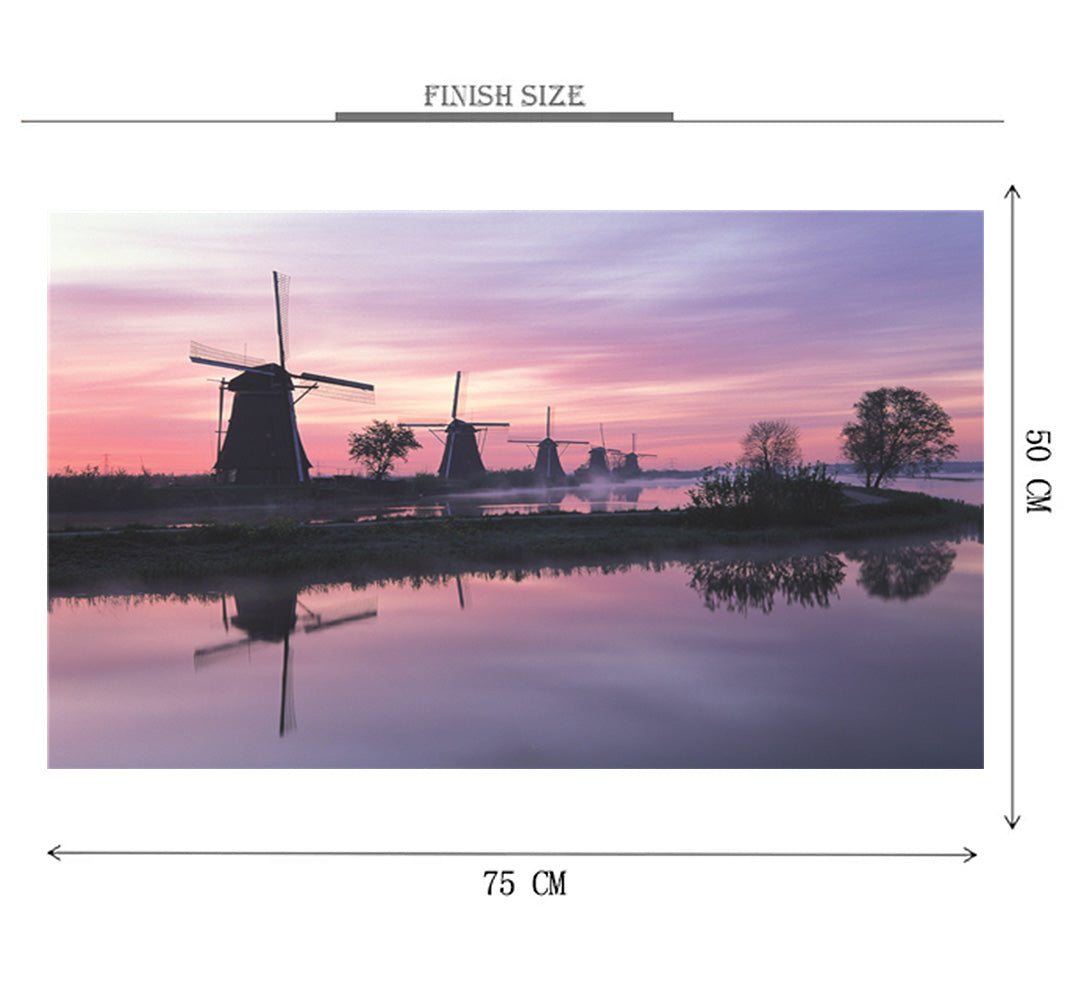 Row of Windmills is a 1000 piece wooden jigsaw puzzle designed by artist Francis Deroa. The painting represents the imaginative idea of a dreamy castle in the clouds. This is a futuristic piece designed for little scientists in your house or older kids with a flair for space and fiction. The 1000-piece jigsaws offer an enjoyable challenge to all puzzle enthusiasts