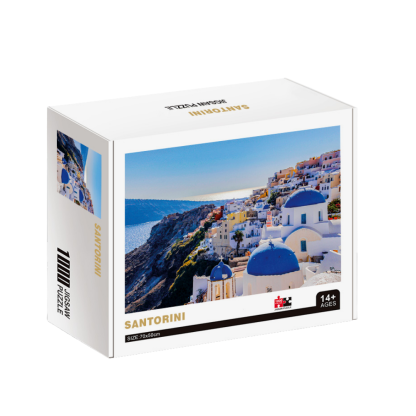 Santorini Wooden 1000 Piece Jigsaw Puzzle Toy For Adults and Kids is a 1000 piece wooden jigsaw puzzle designed by artist Kiaan Scott. Experience the beauty of greatest Greek city Santorini collecting all puzzles in one big picture. The 1000-piece jigsaws offer an enjoyable challenge to all puzzle enthusiasts.