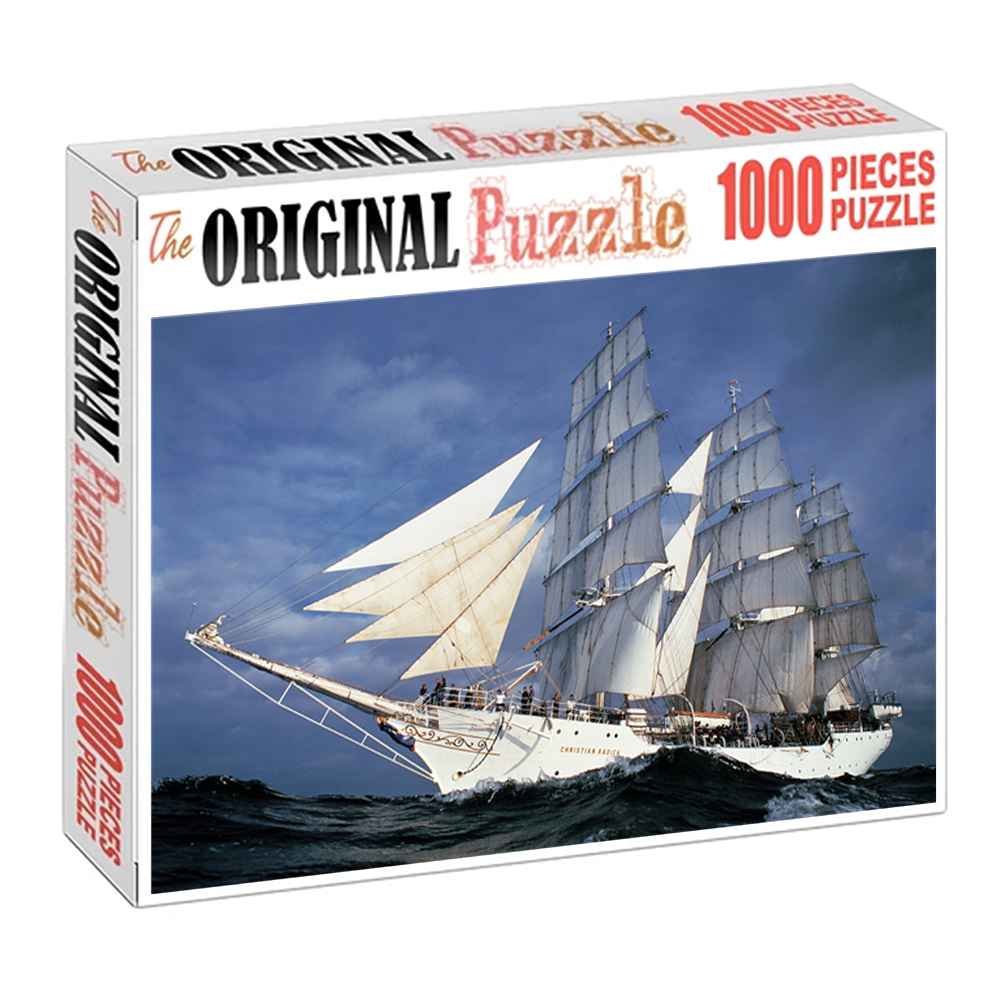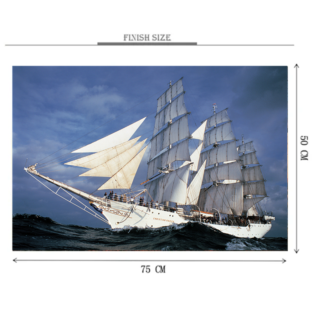 Ship Sailing is a 1000 piece wooden jigsaw puzzle designed by artist Shanna Hobbs. Enjoy putting together this amazing painting that shows a pleasing view of the sky over the seas in daylight while appreciating all details in the painting! 1000-piece jigsaws offer an enjoyable challenge to all puzzle enthusiasts.
