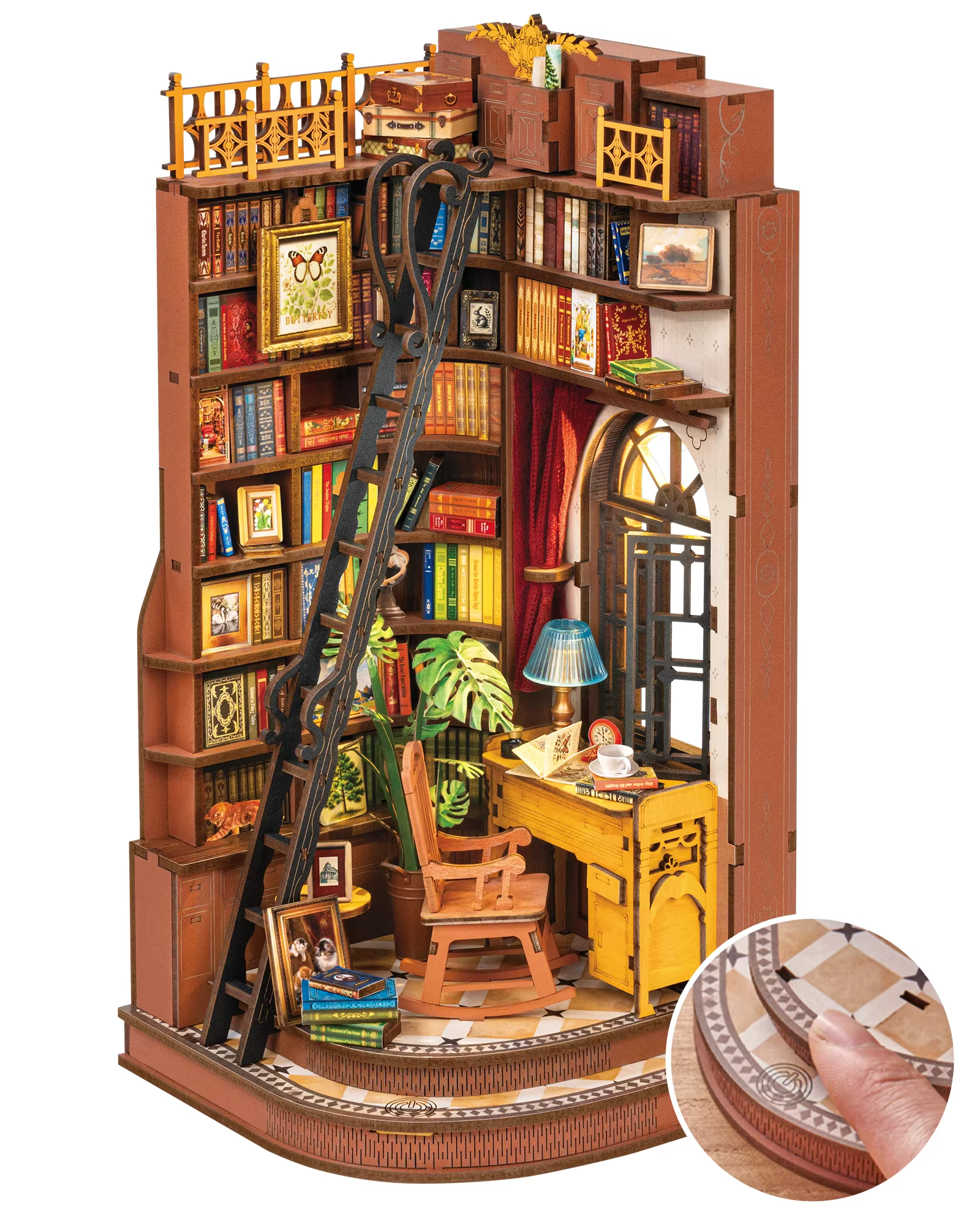 The Silent Corner Study Themed DIY Book Nook Kit offers several features: