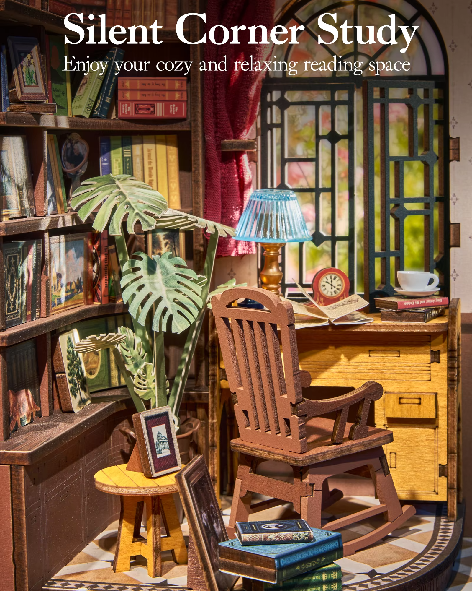 Charming Home Decor: Once assembled, the Silent Corner Study Themed DIY Book Nook Kit adds elegance and tranquility to your bookshelf, study, or any room in need of a cozy look.