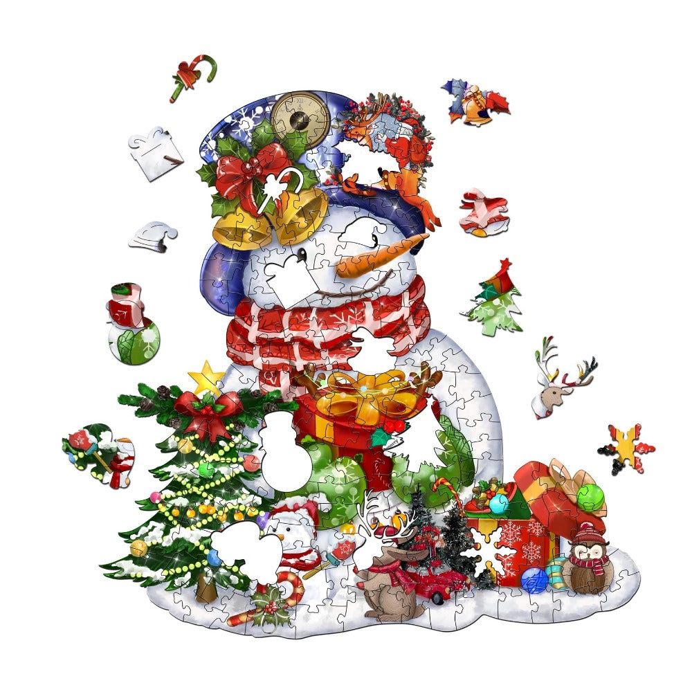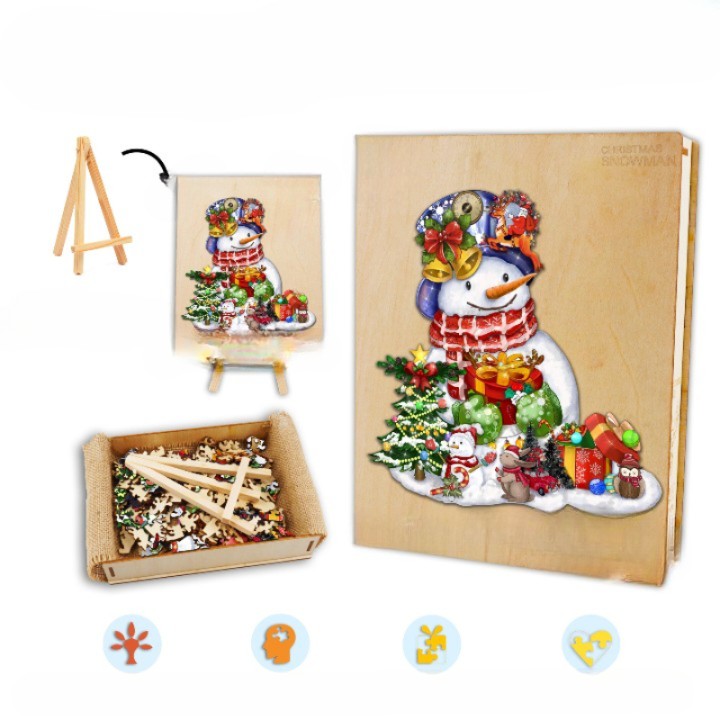 A Festive Puzzle to Adorn Your Home: This "Festive Cheer Christmas Snowman Wooden Jigsaw Puzzle" isn't just for play; it doubles as a yuletide decoration when completed. It's a gift for puzzle enthusiasts or a tradition to start with your special ones. Bring home this piece of holiday charm and create memories that will last a lifetime.