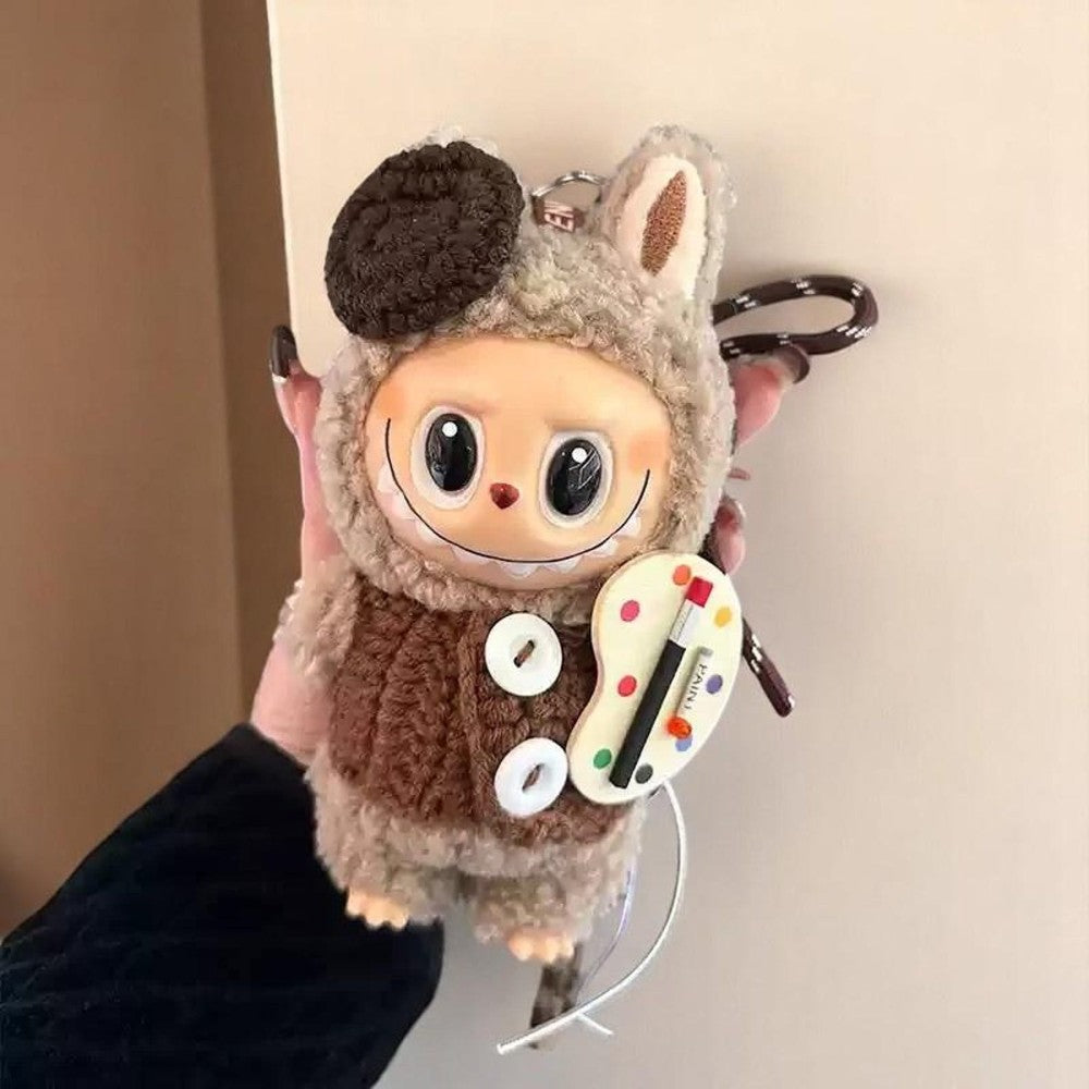 The bunny-inspired monster form creates a hybrid look that blends animated themes. These elements make the accessory attractive to fans of imaginative figures or character-based design. The soft feel adds a sensory element while the cartoon styling enhances visual engagement.