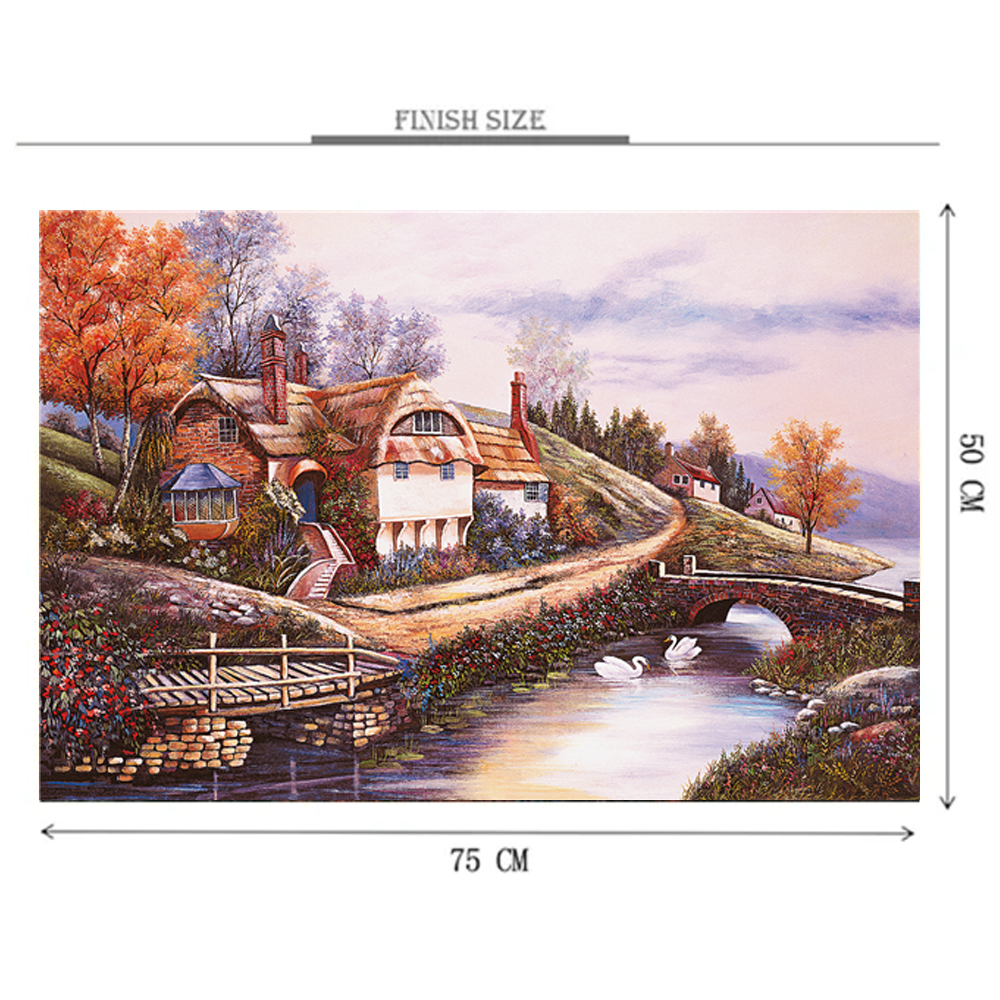 Swans By The House is a 1000 piece wooden jigsaw puzzle designed by artist Randi Ramsey. Enjoy putting together this amazing painting that shows a pleasing view of the swans by the house while appreciating all details in the painting! 1000-piece jigsaws offer an enjoyable challenge to all puzzle enthusiasts.