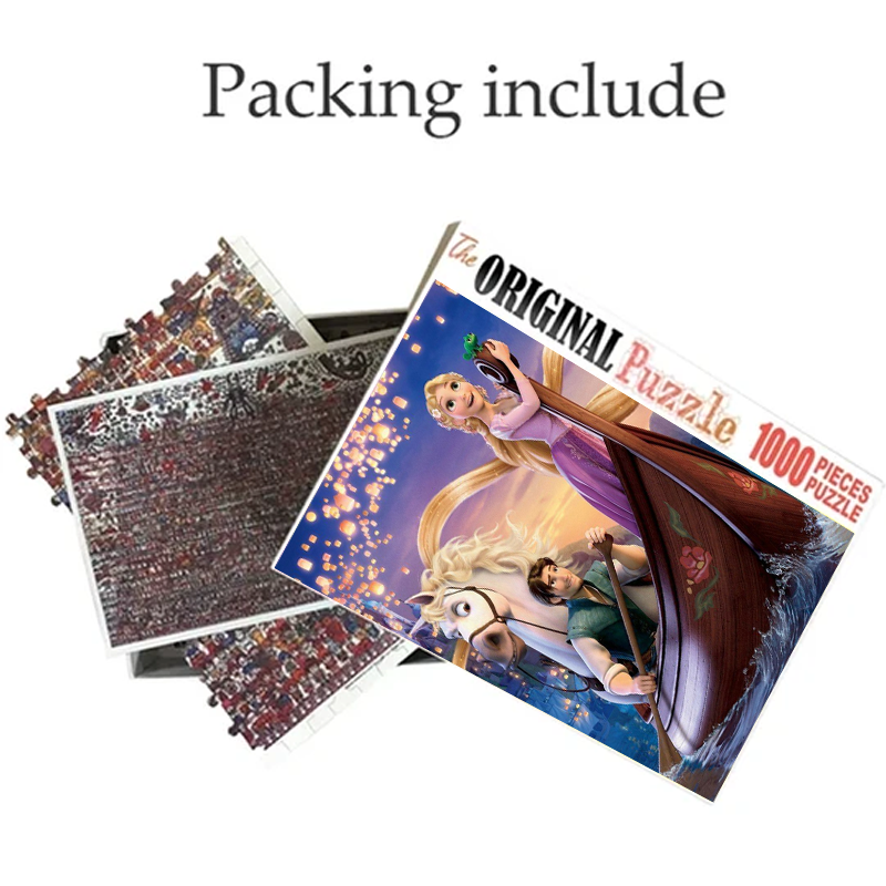 Tangled is a 1000 piece wooden jigsaw puzzle that illustrates beautiful princess Rapunzel who was locked away in a tower since she was captured as a baby.
