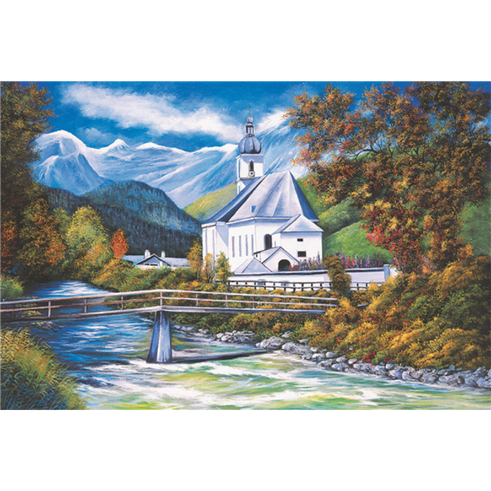 The Church Of Ramsau is a 1000 piece wooden jigsaw puzzle designed by artist Raheem Moreno. This resplendent landscape is worth building piece by piece. The 1000-piece jigsaws offer an enjoyable challenge to all puzzle enthusiasts.