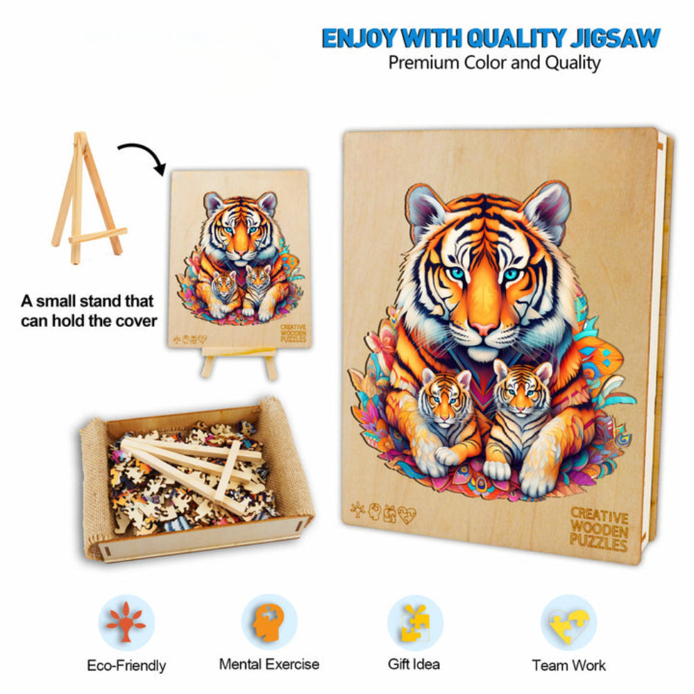 Gather your pride and embark on an assembling adventure with the Tiger Family Wooden Jigsaw Puzzle, a tribute to one of nature's most awe-inspiring animals.