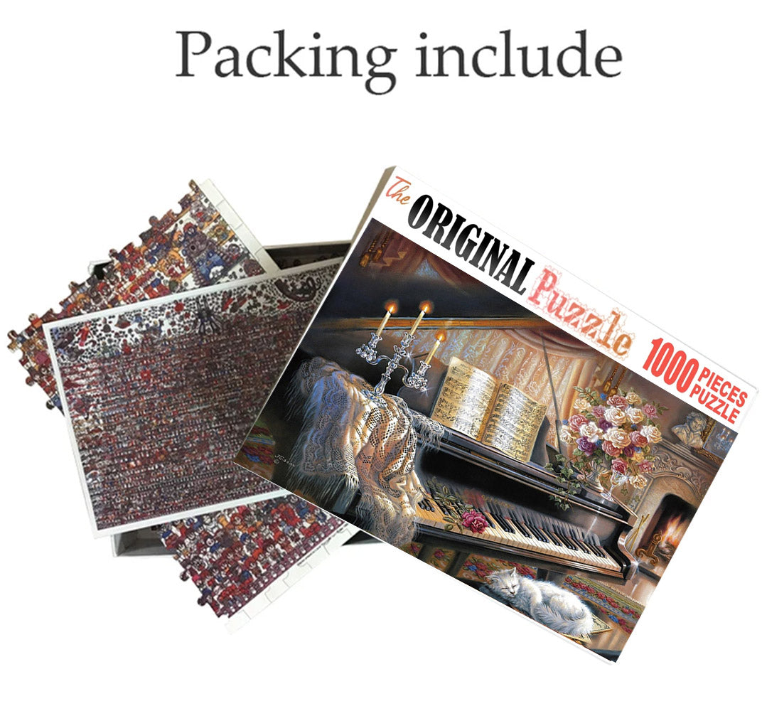 Uncovered Piano is a 1000 piece wooden jigsaw puzzle designed by artist Francis Deroa. The painting represents the imaginative idea of a dreamy castle in the clouds. This is a futuristic piece designed for little scientists in your house or older kids with a flair for space and fiction. The 1000-piece jigsaws offer an enjoyable challenge to all puzzle enthusiasts