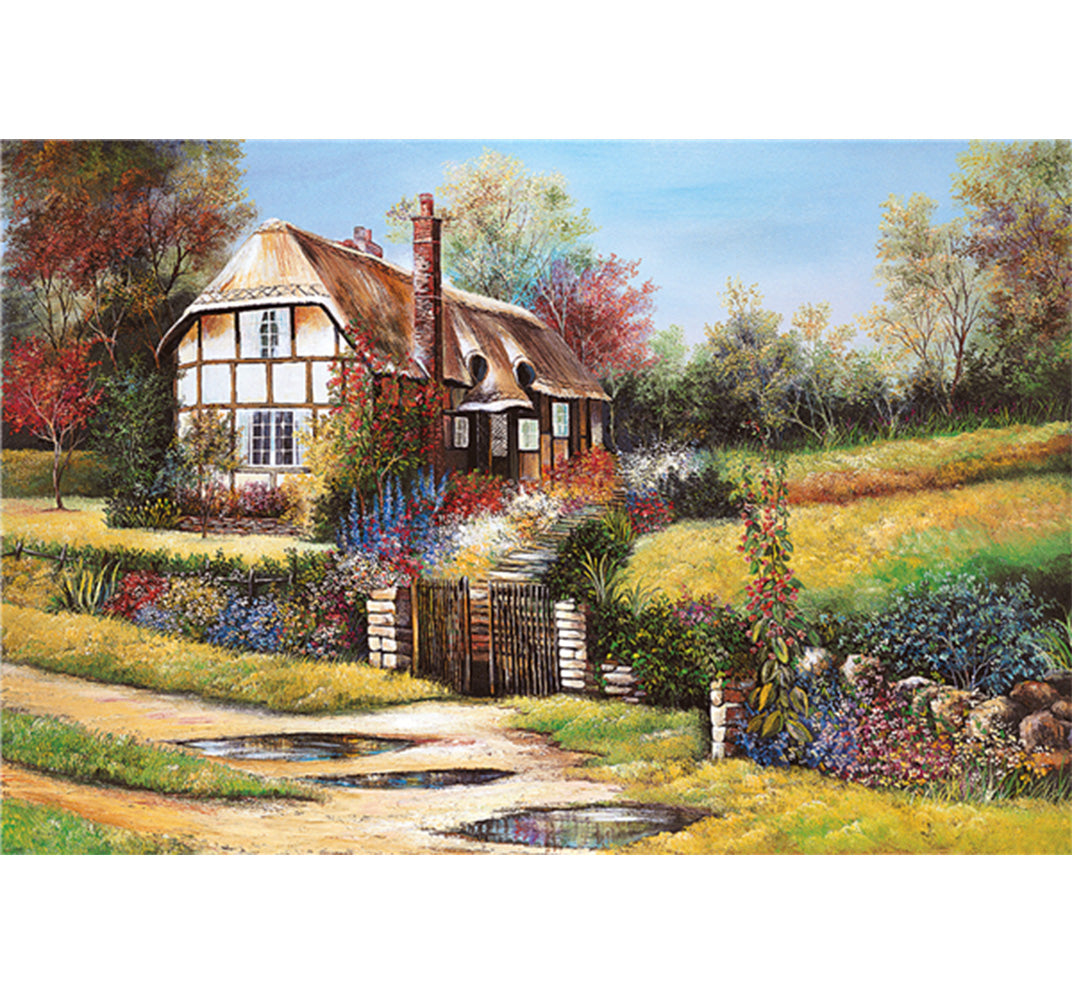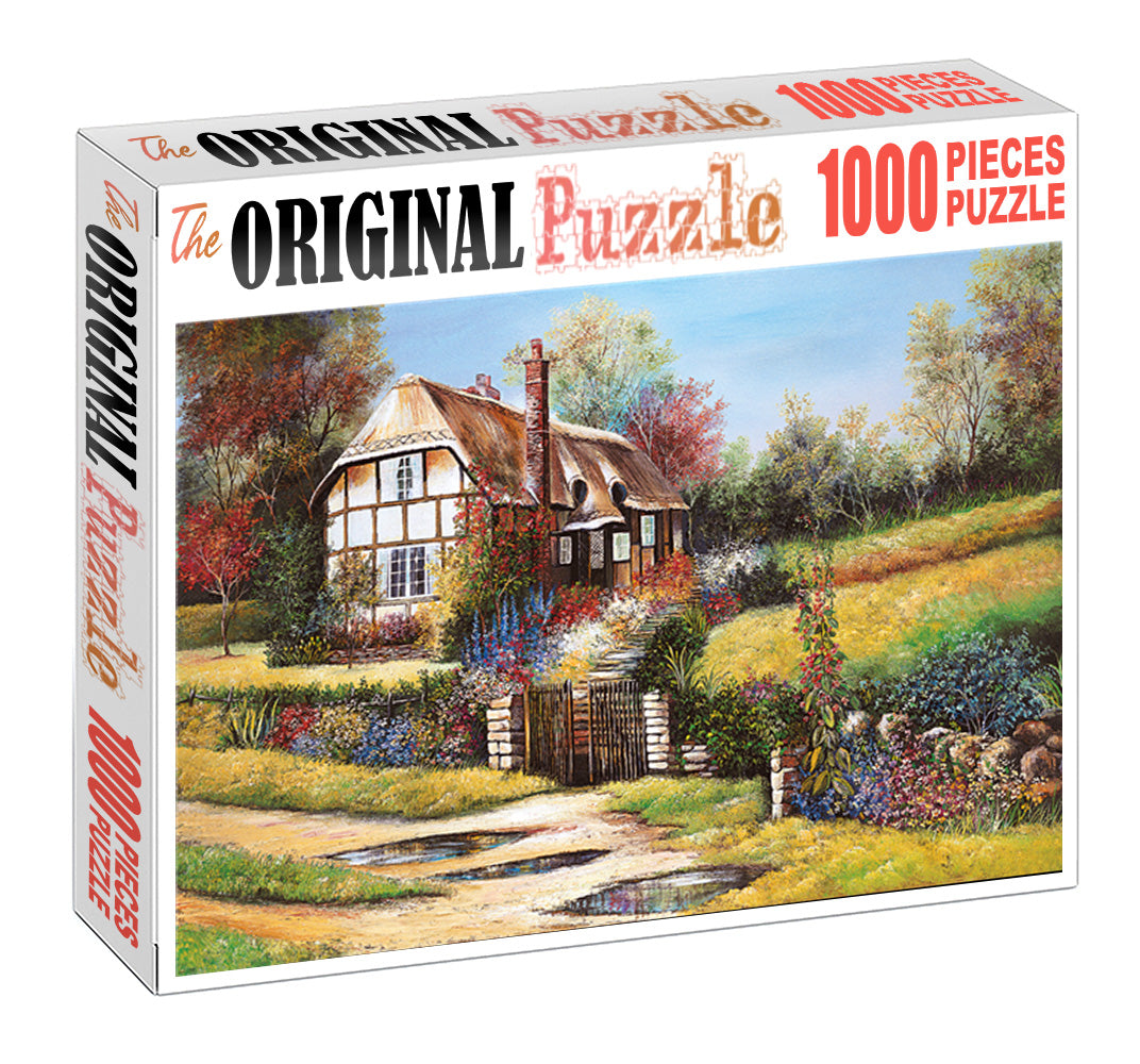 Village Hut is a 1000 piece wooden jigsaw puzzle painting represents the imaginative idea of a of house in the nature!