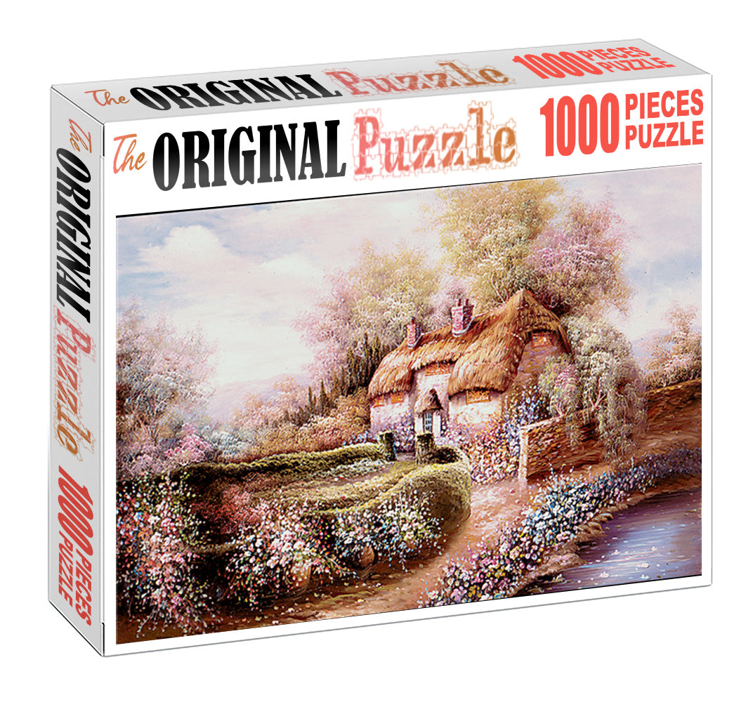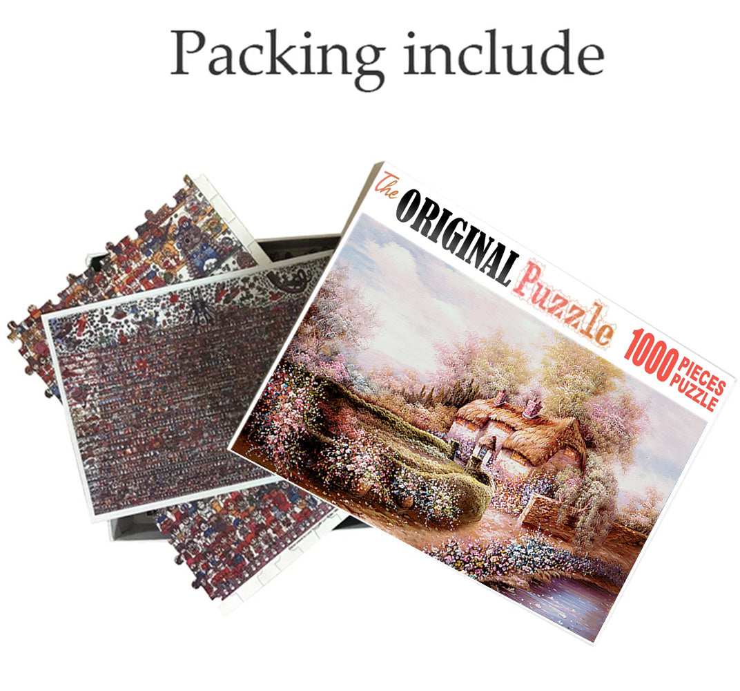 Village Hut is a 1000 piece wooden jigsaw puzzle painting represents the imaginative idea of a of house in the nature!