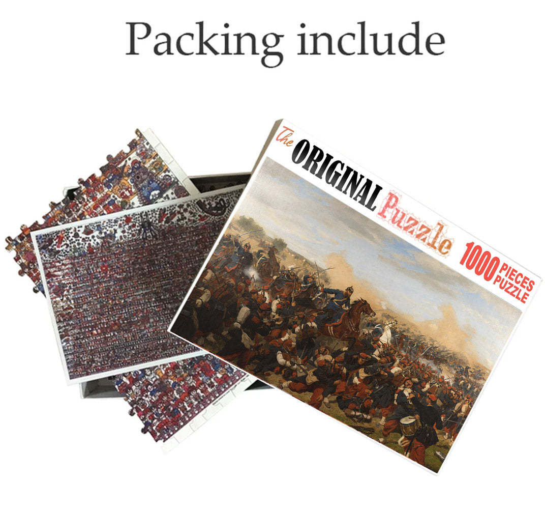 War of the Era is a 1000 piece wooden jigsaw puzzle painting represents the imaginative idea of war during the early Victorian era!
