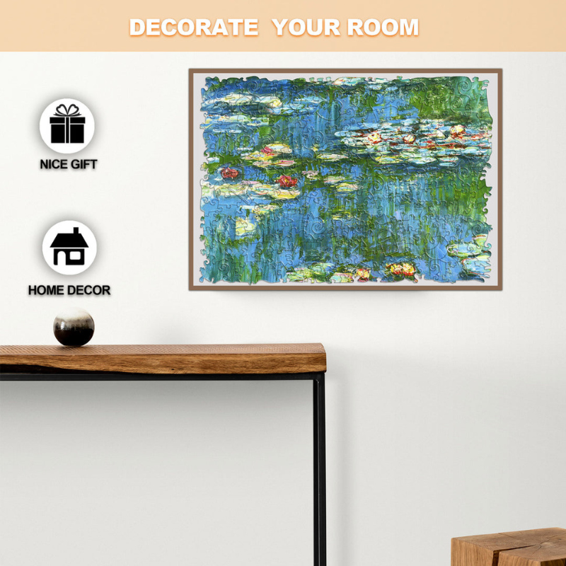 Discover the perfect balance of aesthetics and intellect with our Water Lilies Wooden Jigsaw Puzzle – an exquisite gift for yourself or a special one.