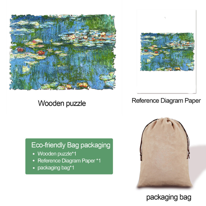 Introducing our Water Lilies Wooden Jigsaw Puzzle – an exceptional gift that combines beauty and brain-stimulating fun. Crafted with precision from premium 3mm cork and HDF wood, this puzzle is an exquisite piece of educational entertainment.
