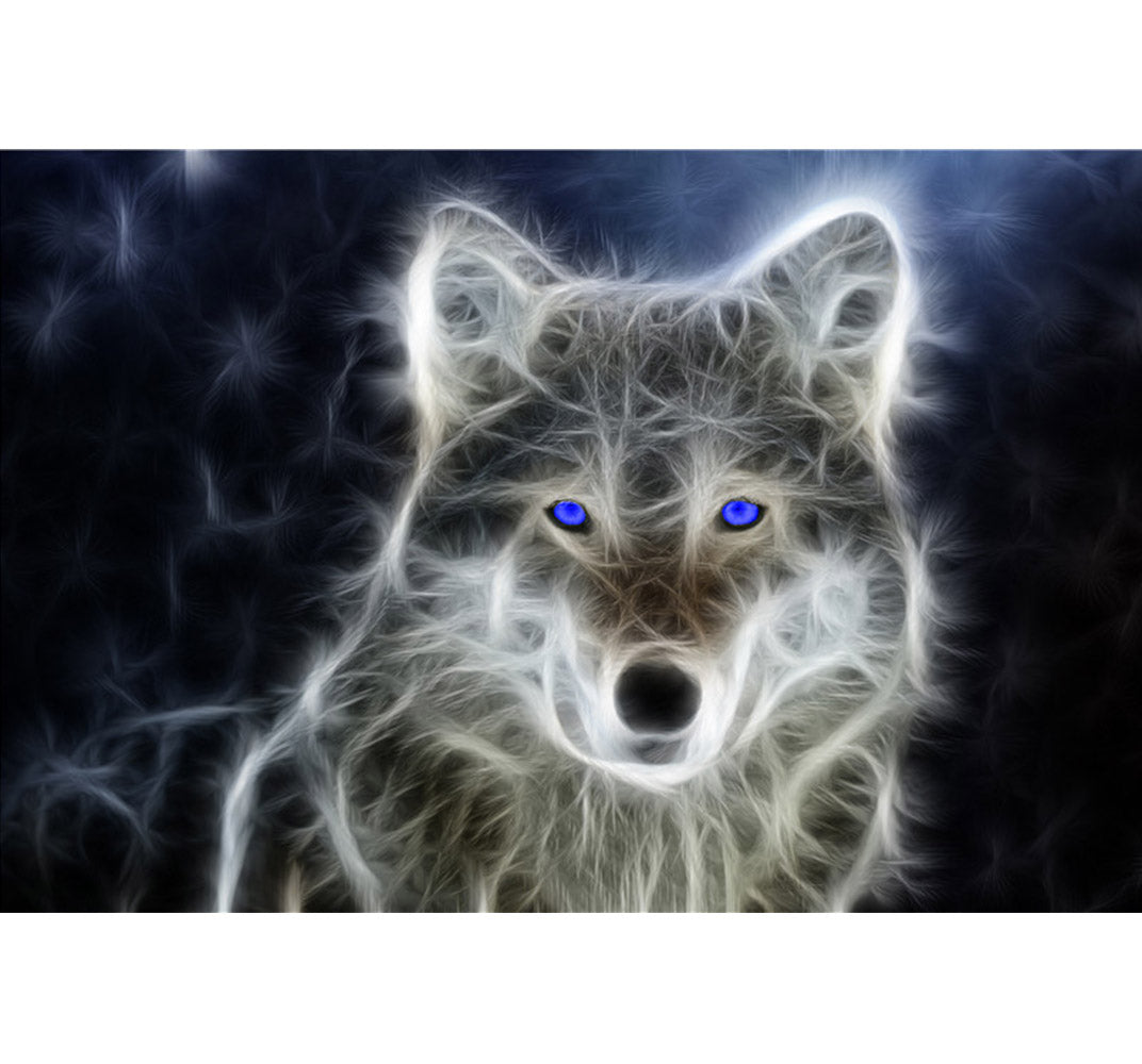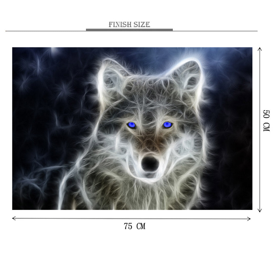 Wolf of Silk is a 1000 piece wooden jigsaw puzzle which represents a beautiful illustration of wolf with blue eyes..