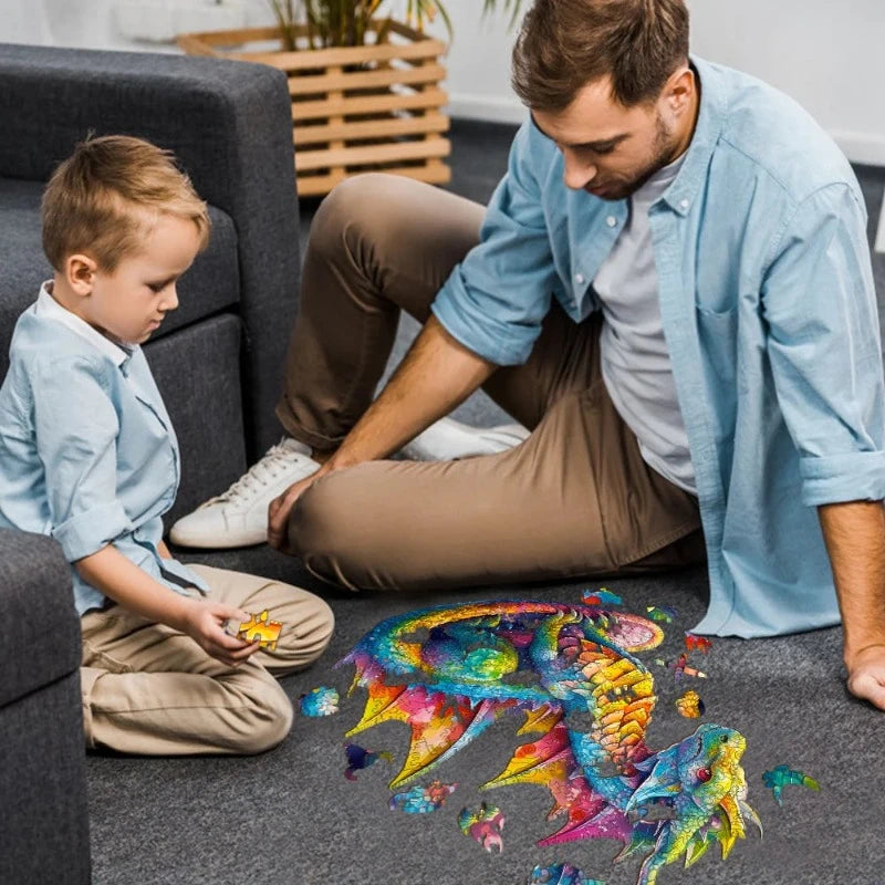 A Work of Art and Fantasy: The "Wooden Dragon Jigsaw Puzzle" is not just a puzzle; it's a journey into the realm of legends. Once completed, it transforms into a stunning piece of art that can be proudly displayed or shared with fellow dragon admirers.