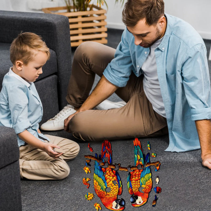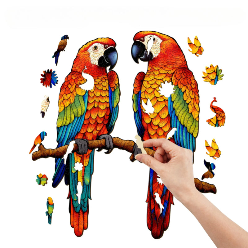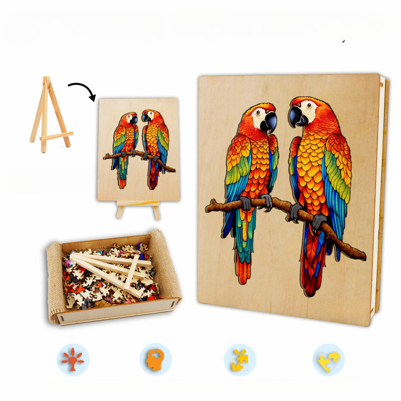 The Wooden Talking Parrots Jigsaw Puzzle is not just an enjoyable pastime but an invitation to piece together the beauty of nature, piece by vibrant piece, perfect for display or as an activity to enjoy with family and friends.
