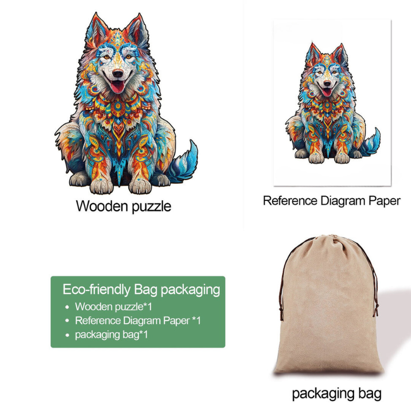 Experience the joy of assembling our Alaskan Wolf Wooden Jigsaw Puzzle – where art meets education most an enjoyable!