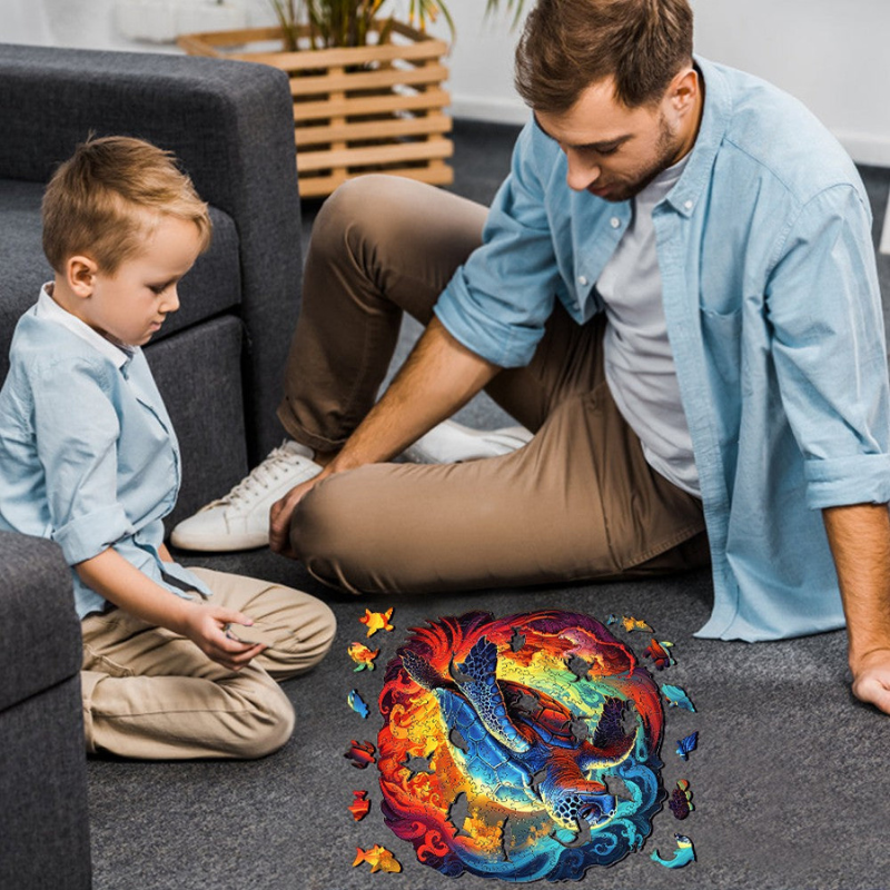 Introducing the Flying Turtle Wooden Jigsaw Puzzle, a captivating and educational game that combines premium craftsmanship with brain-boosting fun. This exceptional gift is meticulously designed to provide hours of entertainment while enhancing cognitive skills.