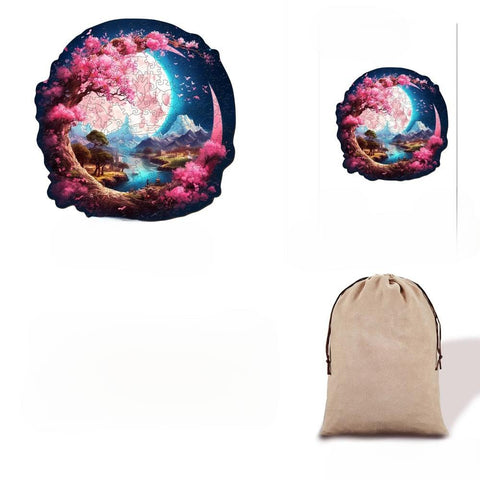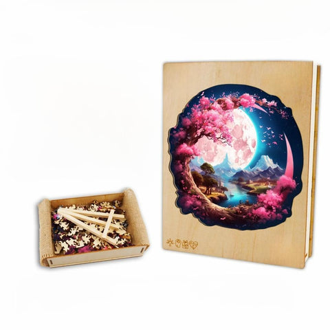 Piece together a nocturnal masterpiece with the Moon Wooden Jigsaw Puzzle, where every fragment brings you closer to the tranquil beauty of a moonlit realm. This puzzle offers a serene landscape bathed in the gentle glow of a full moon, embraced by blossoming trees, and set against a backdrop of mystic mountains. It's a soothing escape into a puzzle that mirrors the peacefulness of a clear night sky.
