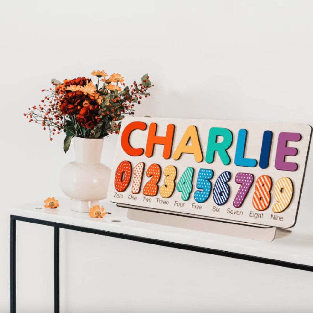 Brighten the path of learning with our "Rainbow Custom Wooden Name and Numbers Puzzle." Featuring vibrant hues, this puzzle merges joyful play with educational purposes. Perfect as a cheerful gift and a colorful keepsake, it turns every learning moment into a celebration of colors, making it an ideal choice for blending fun and educational insights.